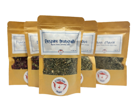 Découvrez la Tisane Respire Tranquille, une infusion revitalisante pour une respiration saine et apaisée avec Romarin, Mysope, Ronce et Citron. Romarin pour dégager les voies respiratoires, Mysope pour calmer les irritations et faciliter la respiration, Ronce pour soulager la toux et les maux de gorge, Citron pour une fraîcheur vitaminée et des défenses renforcées. Savourez et respirez naturellement.
