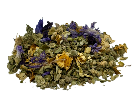 - Composition : Mauve (fleurs et feuilles), Camomille, Passiflore, Marjolaine.
