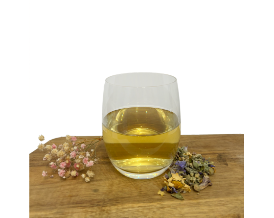- Composition : Mauve (fleurs et feuilles), Camomille, Passiflore, Marjolaine.